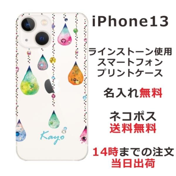 iPhone13 アイフォン13 らふら 名入れ スマホケース ラインストーン カラフルしずく