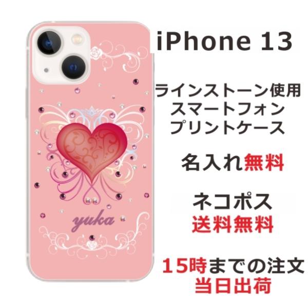 iPhone13 アイフォン13 らふら 名入れ スマホケース ラインストーン ラグジュアリーハート