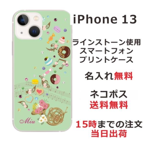 iPhone13 アイフォン13 らふら 名入れ スマホケース ラインストーン スイーツメロディ