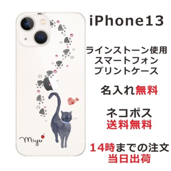 iPhone13 アイフォン13 らふら 名入れ スマホケース ラインストーン 黒猫
