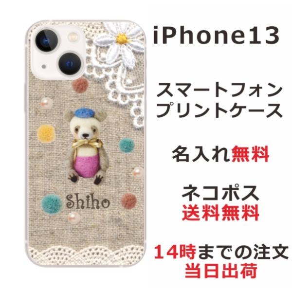 iPhone13 アイフォン13 らふら 名入れ スマホケース コットンレース風 クマ