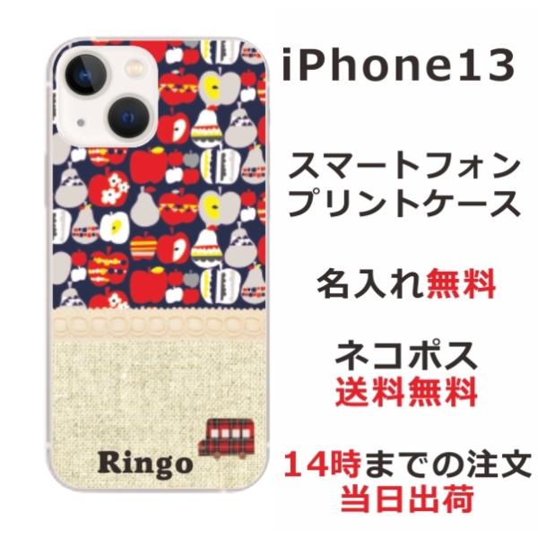 iPhone13 アイフォン13 らふら 名入れ スマホケース 北欧デザイン フルーツ ネイビー