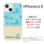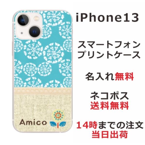 iPhone13 アイフォン13 らふら 名入れ スマホケース 北欧デザイン フラワー ブルー
