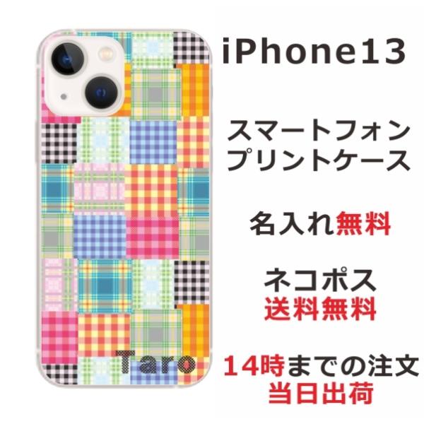 iPhone13 アイフォン13 らふら 名入れ スマホケース カラフル チェック