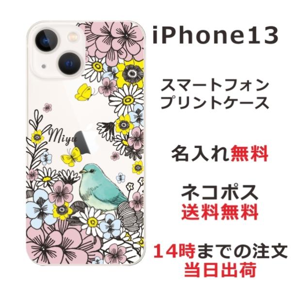 iPhone13 アイフォン13 らふら 名入れ スマホケース フラワーバード