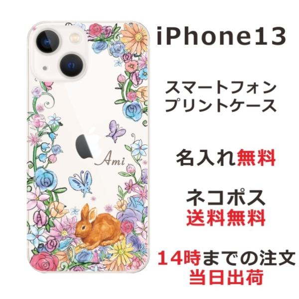 iPhone13 アイフォン13 らふら 名入れ スマホケース お花畑 ウサギ