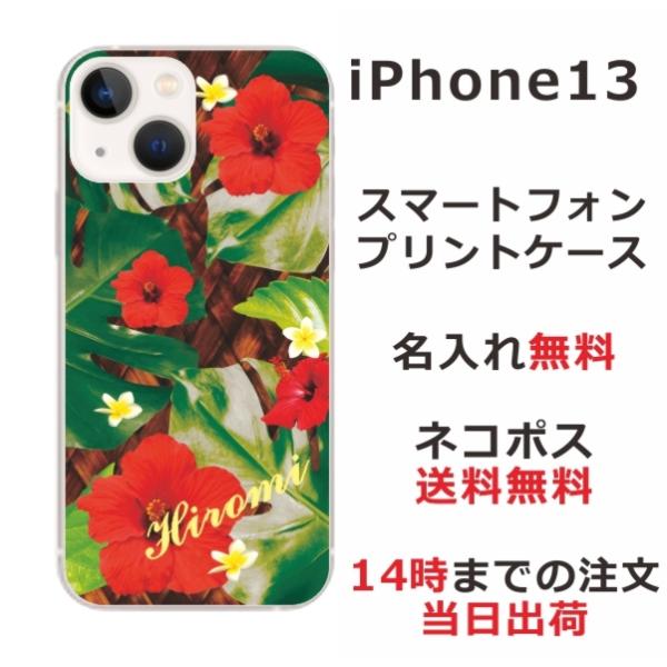 iPhone13 アイフォン13 らふら 名入れ スマホケース ハワイアン ハイビスカス