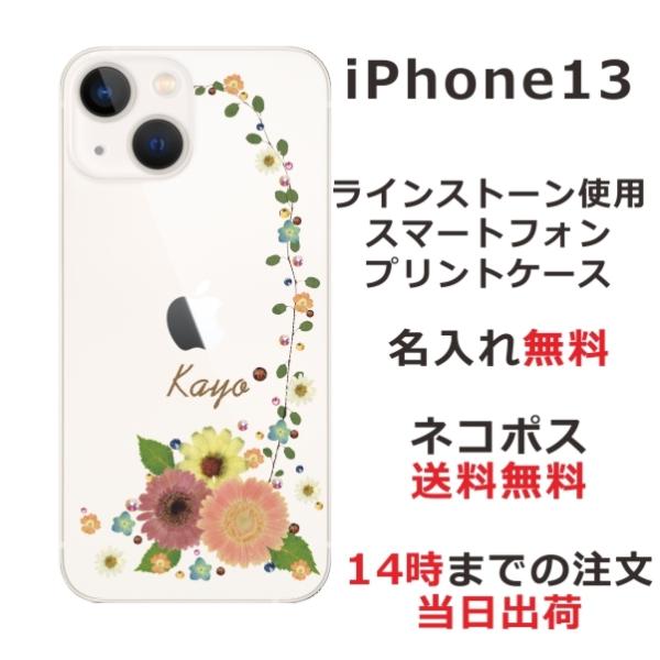 iPhone13 アイフォン13 らふら 名入れ スマホケース ラインストーン スマホカバー 押し花風 パステル アイビー