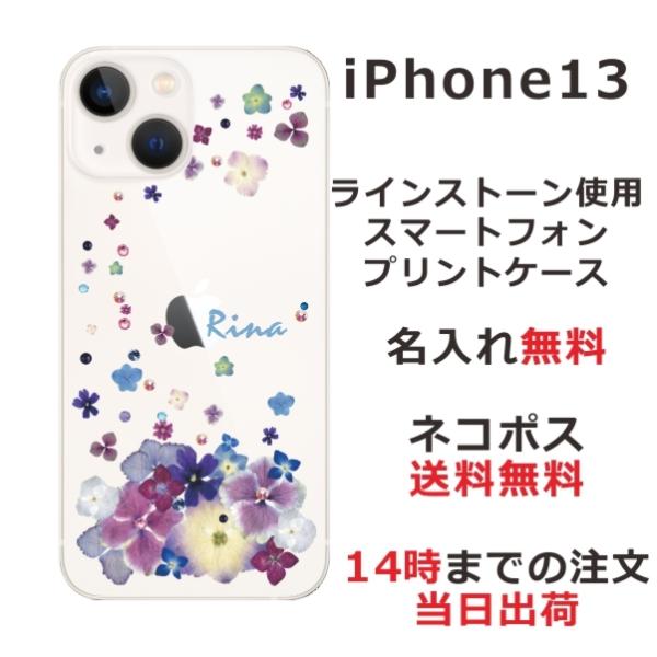 iPhone13 アイフォン13 らふら 名入れ スマホケース ラインストーン スマホカバー 押し花風 デコレーション パープル