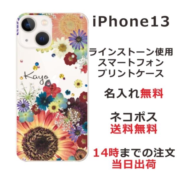 iPhone13 アイフォン13 らふら 名入れ スマホケース ラインストーン スマホカバー 押し花風 フラワーアレンジカラフル