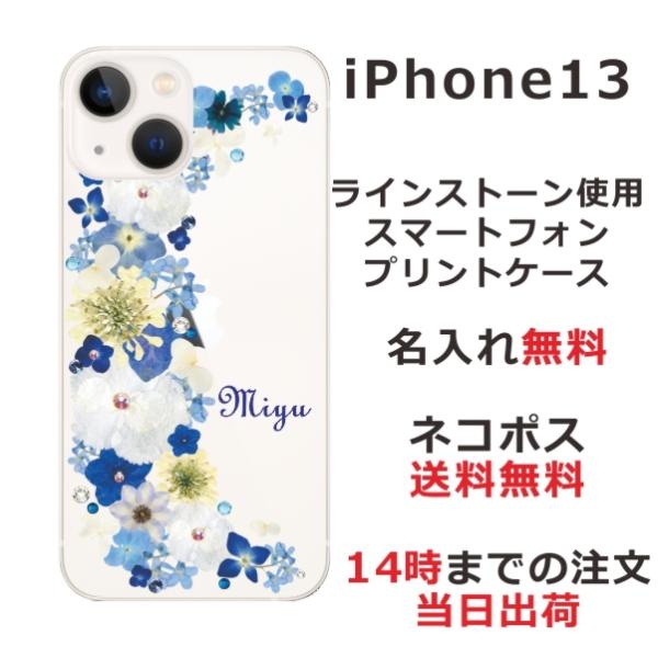iPhone13 アイフォン13 らふら 名入れ スマホケース ラインストーン スマホカバー 押し花風 クレシェンドブルー