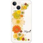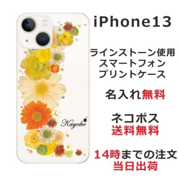 iPhone13 アイフォン13 らふら 名入れ スマホケース ラインストーン スマホカバー 押し花風 クレッシェンドイエロー