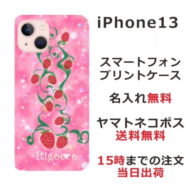 iPhone13 アイフォン13 らふら 名入れ スマホケース いちご畑