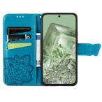 Pixel 8 ケース 手帳型 スマホケース ストラップ付 おしゃれ バタフライ レザー ピクセル8 青