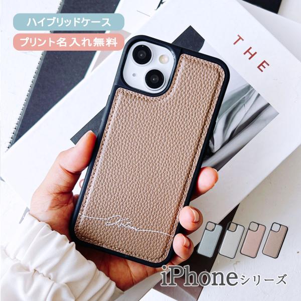 iPhone14 Pro ケース 名入れ アイフォン14 プロ カバー シンプル 印刷 ソフト ハード 「 背面 シボ皮風 ハイブリッド プリント 」