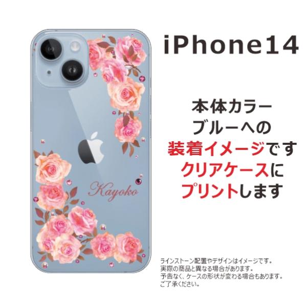 iPhone14 アイフォン14 らふら 名入れ スマホケース ラインストーン スマホカバー 押し花風 ベビーピンク ローズ