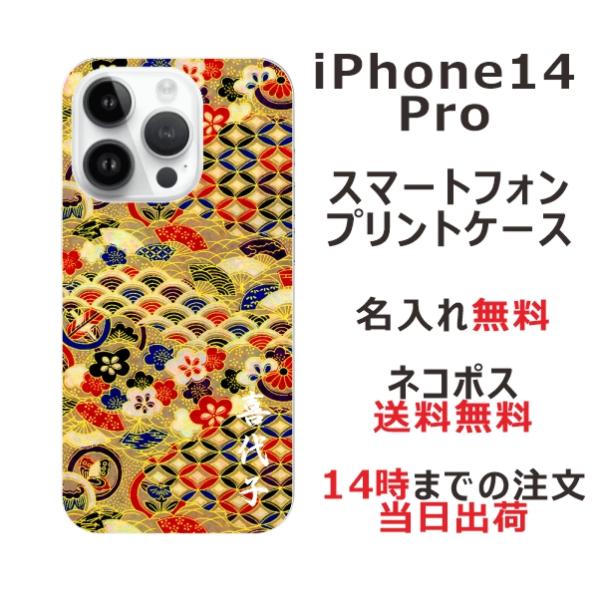 iPhone14 Pro アイフォン14プロ らふら 名入れ スマホケース 和柄 千代紙ゴールド