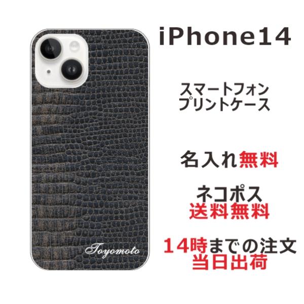 iPhone14 アイフォン14 らふら 名入れ スマホケース クロコダイル ブラック