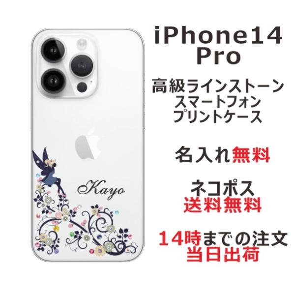 iPhone14 Pro アイフォン14プロ らふら 名入れ スマホケース ラインストーン フェアリーフラワー