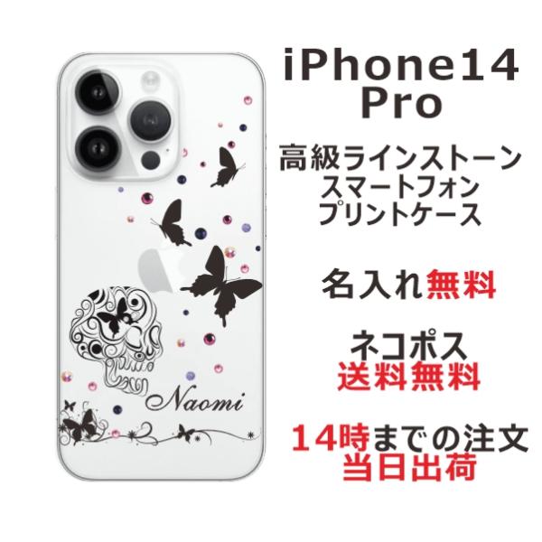 iPhone14 Pro アイフォン14プロ らふら 名入れ スマホケース ラインストーン スカルバタフライ