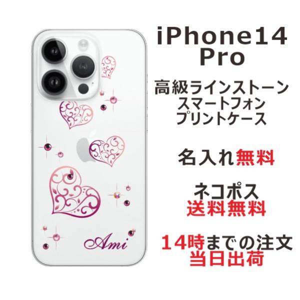 iPhone14 Pro アイフォン14プロ らふら 名入れ スマホケース ラインストーン グラデハート