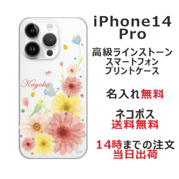 iPhone14 Pro アイフォン14プロ らふら 名入れ スマホケース ラインストーン ふんわりフラワー インコ