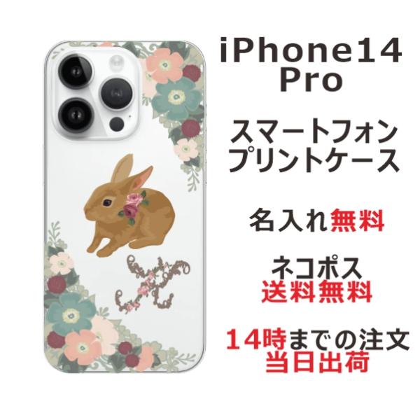 iPhone14 Pro アイフォン14プロ らふら 名入れ スマホケース 茶ウサギイニシャル