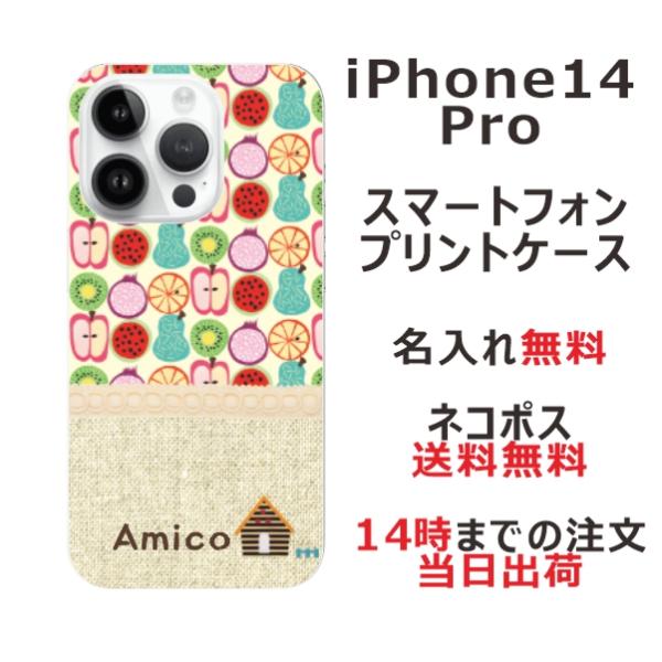 iPhone14 Pro アイフォン14プロ らふら 名入れ スマホケース 北欧デザイン フルーツ カラフル