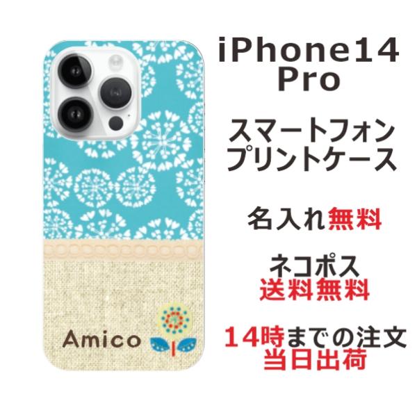 iPhone14 Pro アイフォン14プロ らふら 名入れ スマホケース 北欧デザイン フラワー ブルー