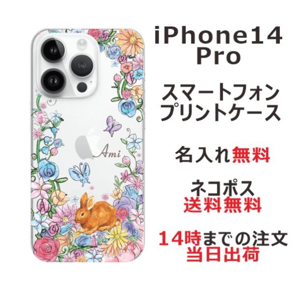 iPhone14 Pro アイフォン14プロ らふら 名入れ スマホケース お花畑 ウサギ