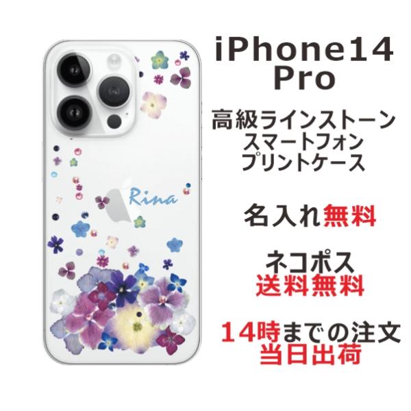 iPhone14 Pro アイフォン14プロ らふら 名入れ スマホケース ラインストーン スマホカバー 押し花風 デコレーション パープル