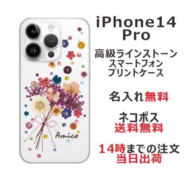 iPhone14 Pro アイフォン14プロ らふら 名入れ スマホケース ラインストーン スマホカバー 押し花風 ブーケフラワー