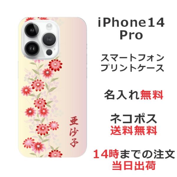 iPhone14 Pro アイフォン14プロ らふら 名入れ スマホケース 和柄 花 撫子