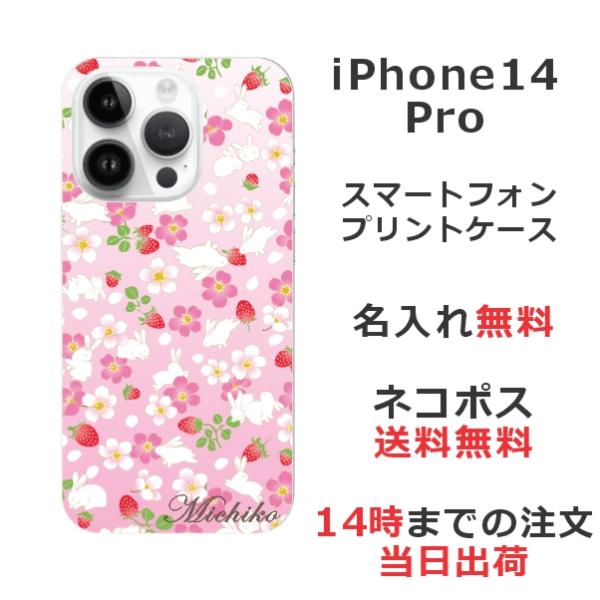 iPhone14 Pro アイフォン14プロ らふら 名入れ スマホケース 和柄 花 桜苺兎