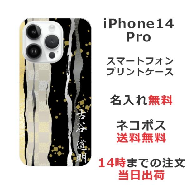 iPhone14 Pro アイフォン14プロ らふら 名入れ スマホケース 和柄 花 モダン漆黒金箔