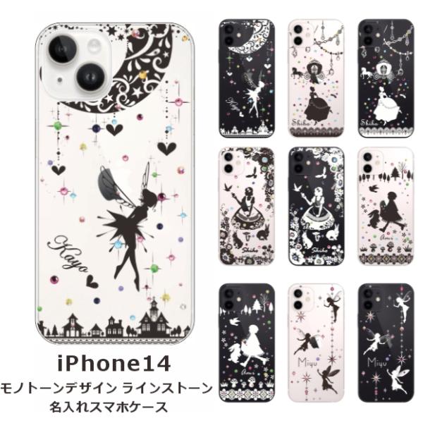 iPhone14 アイフォン14 らふら 名入れ スマホケース ラインストーン モノトーンプリント