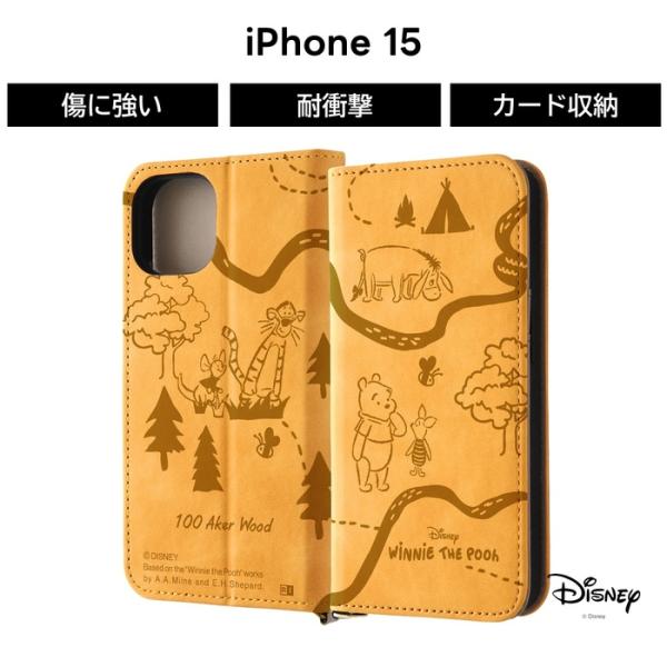 iPhone 15 ケース プーさん くまのプーさん ディズニー iPhone15 アイフォン15 手帳型 手帳型ケース スマホケース キャラクター かわいい 可愛い カード収納