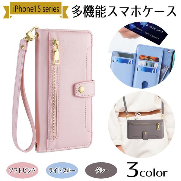 iPhone15ケース スマホケース 手帳型 ショルダー カード収納 財布 ポケット スマホスタンド 背面ポケット 韓国多機能