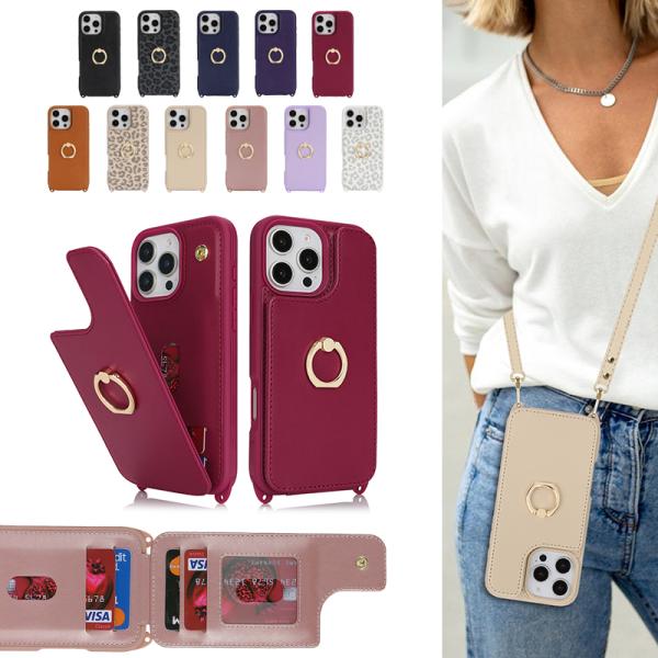 iPhone16 ケース 肩掛け アイフォーン16 Pro Max スマホケース リング付き カード収納 背面 ストラップ付 ショルダー 落下防止 - 楽天での商品説明(けーすらぼ)