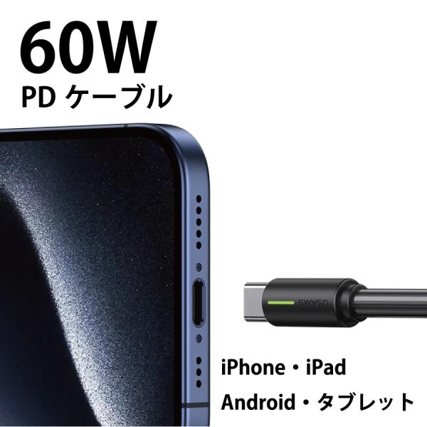 60W 急速充電ケーブル iPhone16e iPhone Galaxy GooglePixel タイプCケーブル