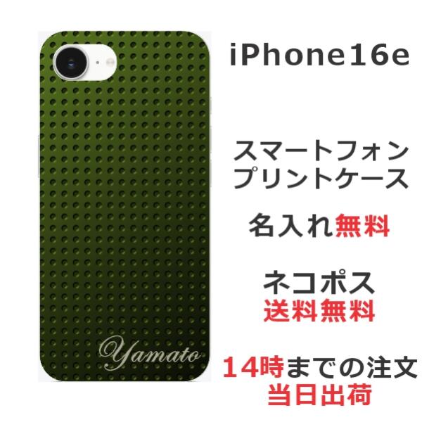 iPhone16e アイフォン16e らふら 名入れ スマホケース メタル グリーン2