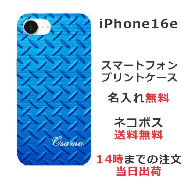 iPhone16e アイフォン16e らふら 名入れ スマホケース メタル ブルー