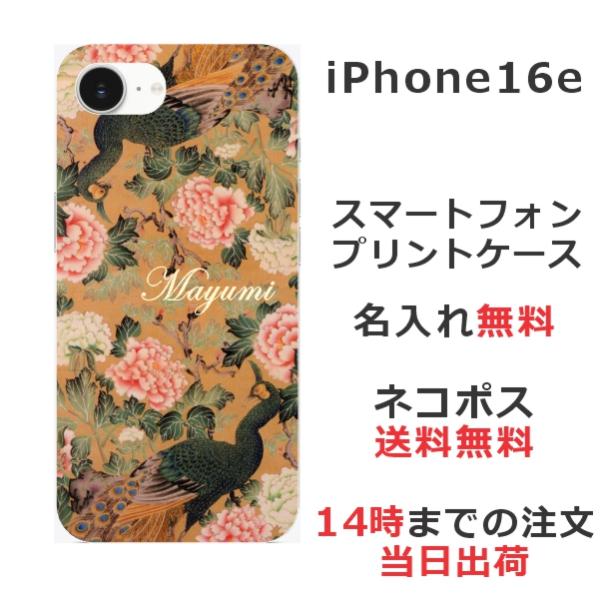 iPhone16e アイフォン16e らふら 名入れ スマホケース 和柄 孔雀牡丹