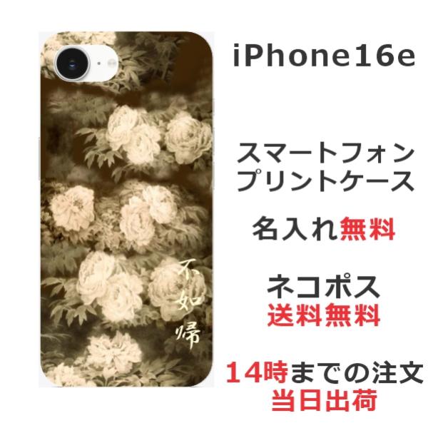 iPhone16e アイフォン16e らふら 名入れ スマホケース 和柄 セピア牡丹