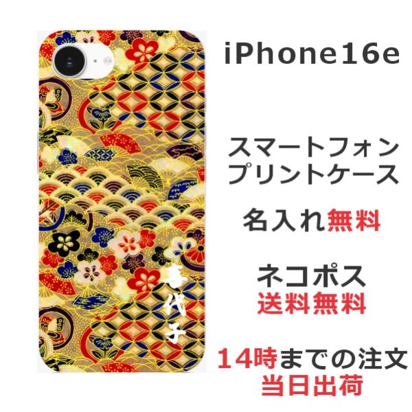 iPhone16e アイフォン16e らふら 名入れ スマホケース 和柄 千代紙ゴールド