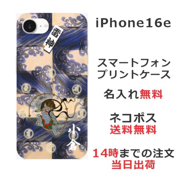 iPhone16e アイフォン16e らふら 名入れ スマホケース 和柄 雷神