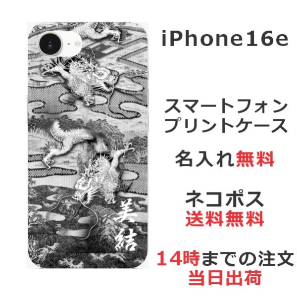 iPhone16e アイフォン16e らふら 名入れ スマホケース 和柄 水墨双龍