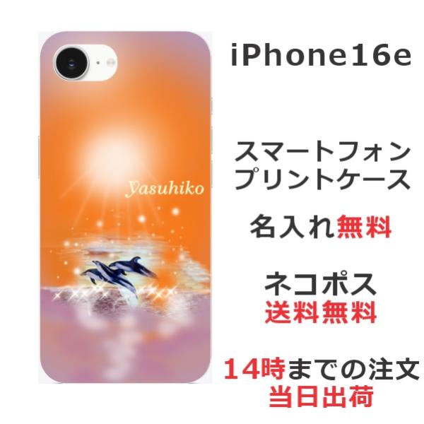 iPhone16e アイフォン16e らふら 名入れ スマホケース ドルフィン サンセット
