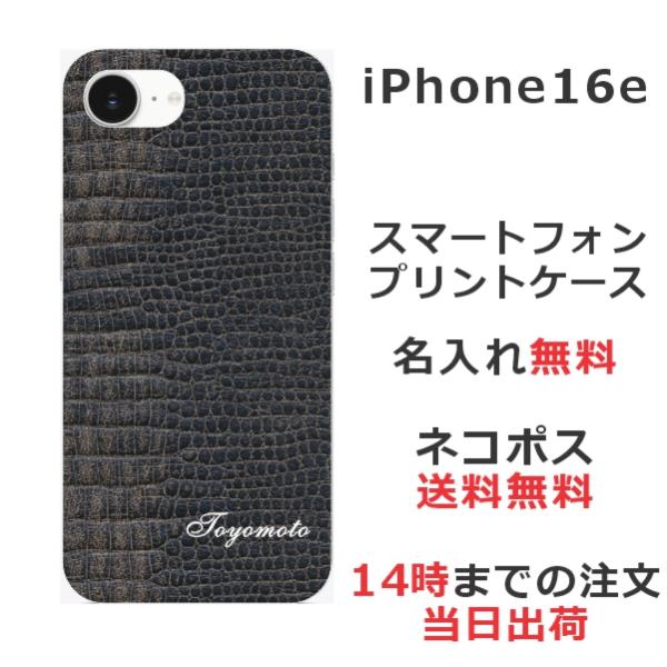 iPhone16e アイフォン16e らふら 名入れ スマホケース クロコダイル ブラック