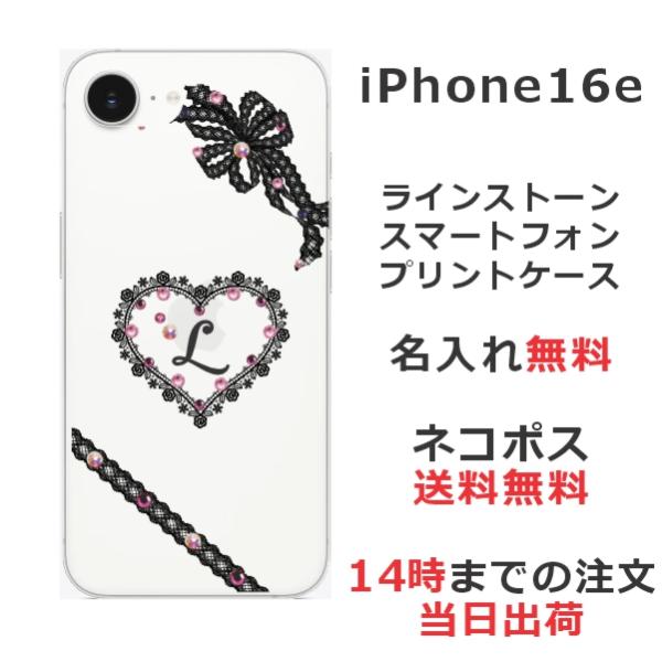 iPhone16e アイフォン16e らふら 名入れ スマホケース ラインストーン ハートレース